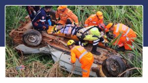 A vítima é mulher retirada com vida – ela estava em uma Picape Strada, bateu no poste e desceu a ribanceira de encontro a Lagoa do Patão.