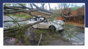 Árvore cai sobre carro durante chuva e deixa motorista ferido na MG-230, em Patrocínio
