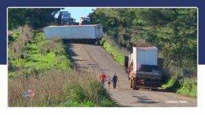 O condutor da relatou à Polícia Militar Rodoviária (PMRv) que o caminhão apresentou falha no sistema de freios ao transitar por um aclive acentuado, e começou a voltar em marcha ré até parar em posição de “L” (efeito canivete), formando um ângulo aproximado de 90 graus entre o cavalo mecânico e o semirreboque, ocasionando o bloqueio total da pista.