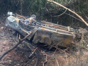 Por volta das 08h50, uma caminhonete Toyota Hilux de cor prata, com placas de Brasília-DF, saiu da pista e caiu em uma ribanceira, incendiando-se logo em seguida.