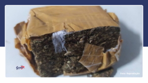 Durante a revista no interior do dormitório, a equipe localizou um tablete de maconha com cerca de 100 gramas escondido dentro do guarda-roupa, além de um caderno com anotações detalhadas sobre a venda de drogas posicionado sobre um móvel ao lado da cama.