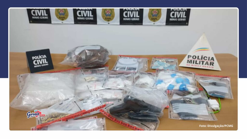 Durante a força-tarefa foram apreendidos uma arma de fogo calibre 9mm; – 36 munições; – 1,1 quilograma de cocaína pura avaliada em R$ 22.000,00; – quatro comprimidos de ecstasy; 500 pinos usados para embalar cocaína; – 13 porções de maconha de tamanhos variados; – 10 pedras de crack; – duas balanças de precisão; – 12 aparelhos celulares; – R$ 1.176,00 em dinheiro.