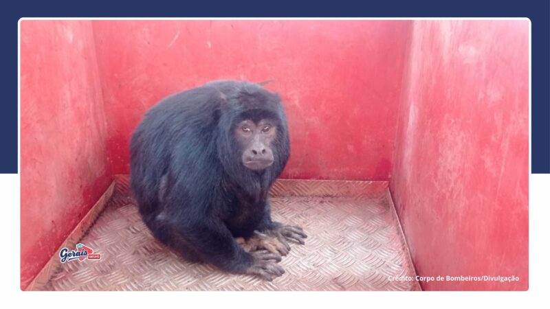 Macaco bugio ferido é resgatado pelo Corpo de Bombeiros em Monte Carmelo
