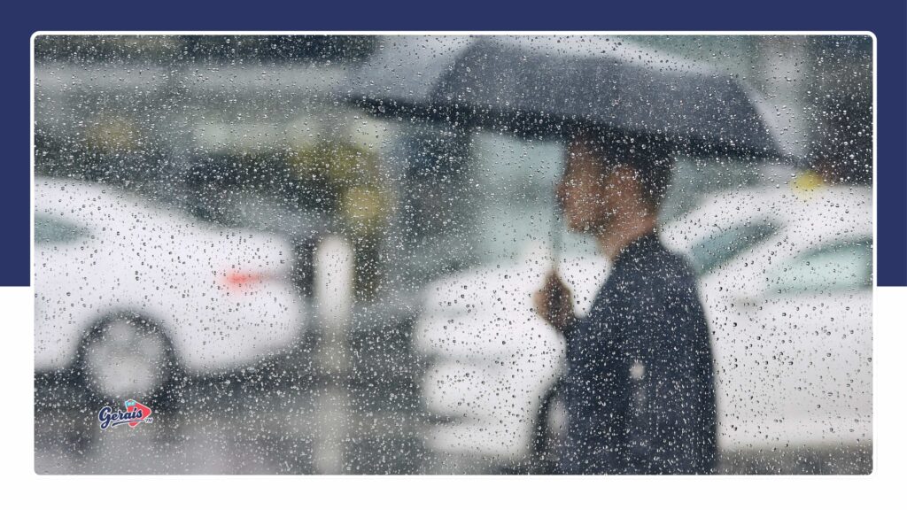 A previsão indica a possibilidade de pancadas de chuva entre 30 e 60 mm/h ou até 100 mm/dia — volume considerado chuva torrencial, equivalente a cerca de 100 litros de água por metro quadrado.