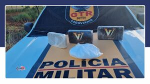 Durante a fiscalização, os policiais encontraram com um passageiro uma sacola contendo duas barras de cocaína em estado petrificado, uma barra de crack e um pacote com pó branco semelhante à cocaína.
