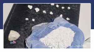 Em continuidade às diligências, os policiais apreenderam porções de cocaína prontas para comercialização, além de uma quantidade maior da substância, suficiente para render aproximadamente 250 porções, e um aparelho celular utilizado na prática criminosa.